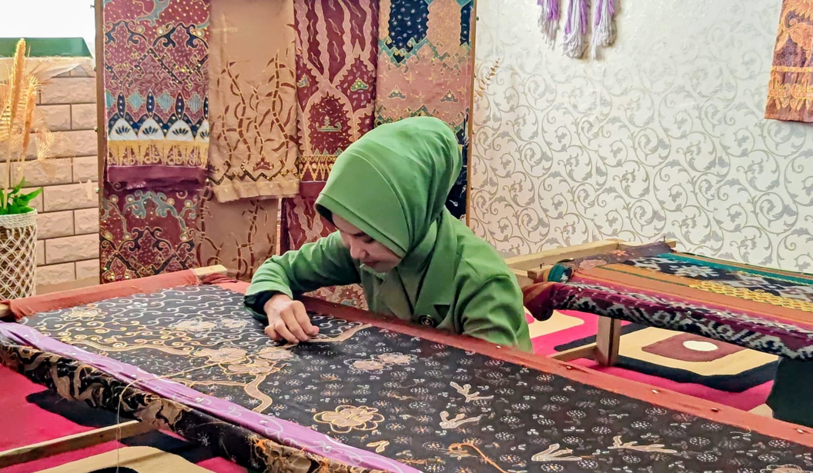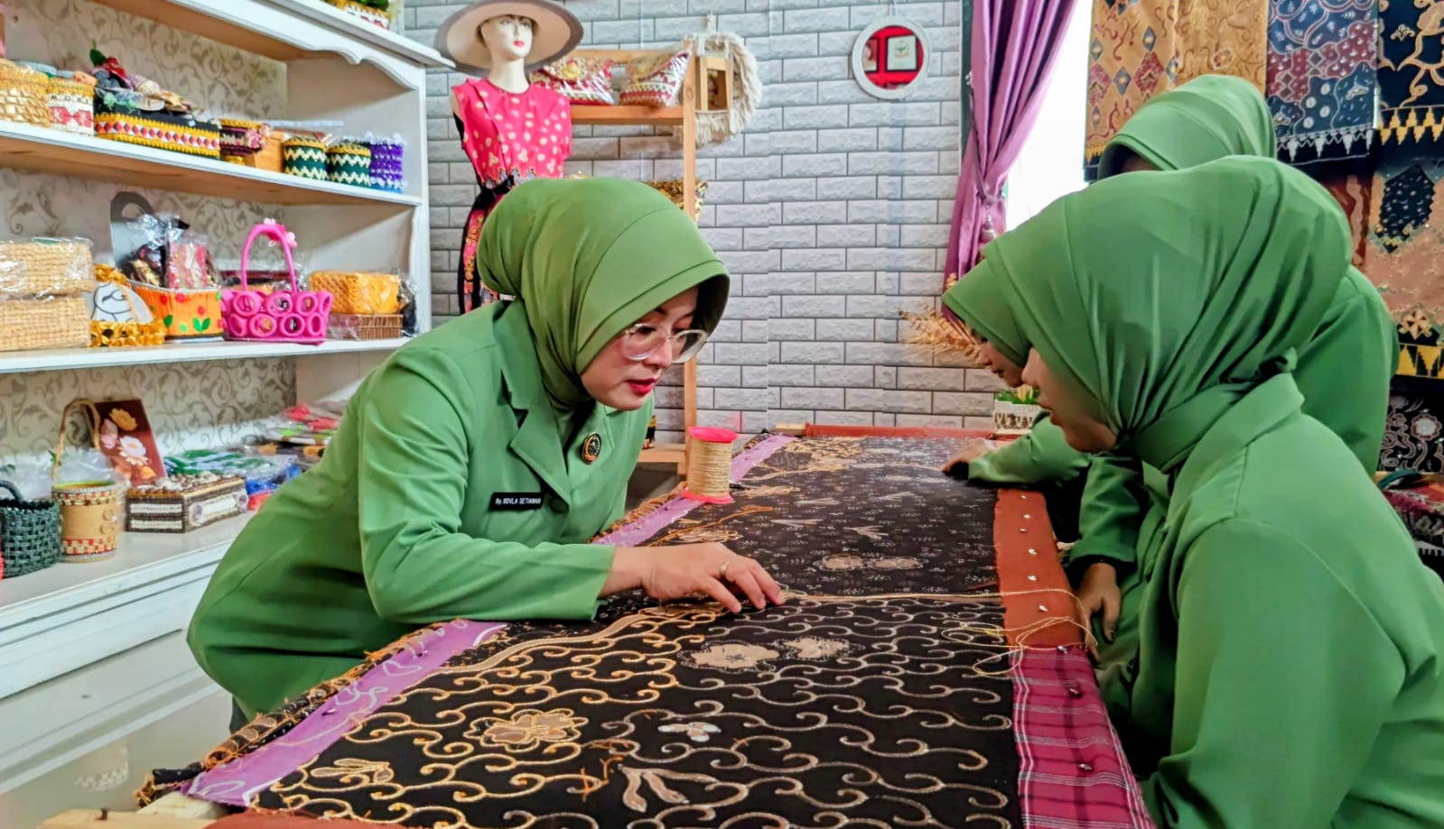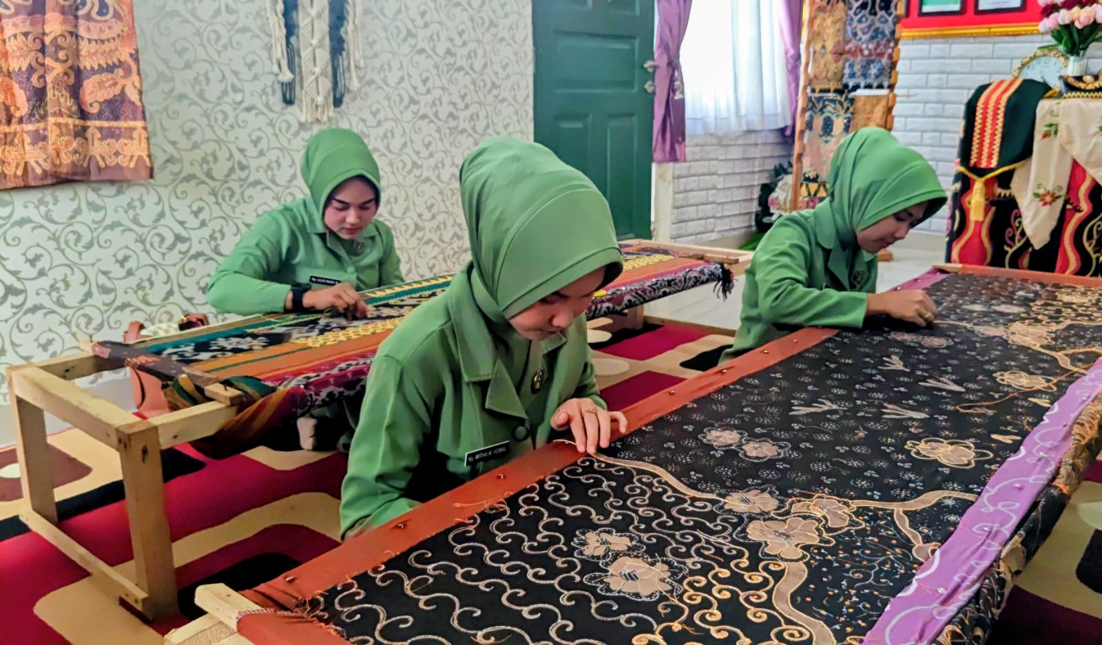 Salah satu anggota Persit, Asri, sudah lebih dulu menekuni usaha tapis. Ia kini ikut menularkan keahlian tersebut ke rekan-rekannya di asrama.