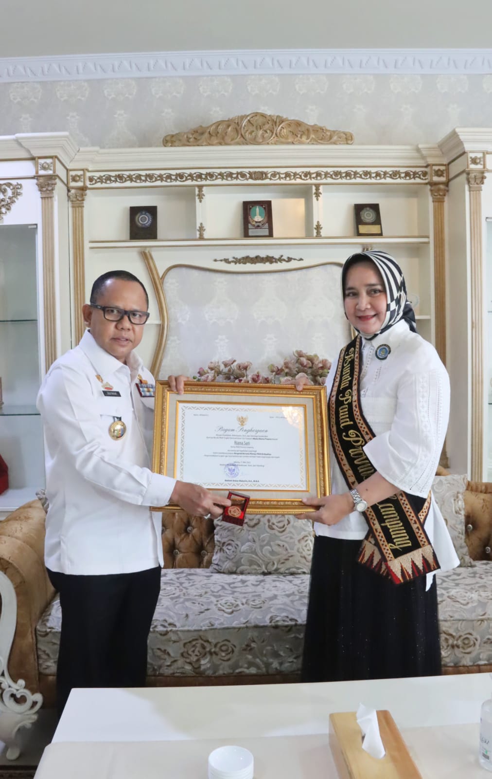 Penghargaan diserahkan kepada Riana Sari Arinal melalui Kepala Dinas Pendidikan danĀ Kebudayaan Provinsi Lampung Sulpakar di Kantor TP PKK Provinsi Lampung.