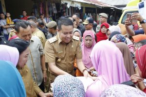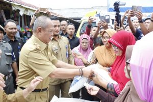 PESAWARAN-(PeNa), Wakil Gubernur Lampung, Bahtiar Basri bersama Wakil Bupati Pesawaran, Eriawan laksanakan operasi beras di halaman parkir Pasar Sukaraja, Kecamatan Gedong Tataan, Selasa (6/2).