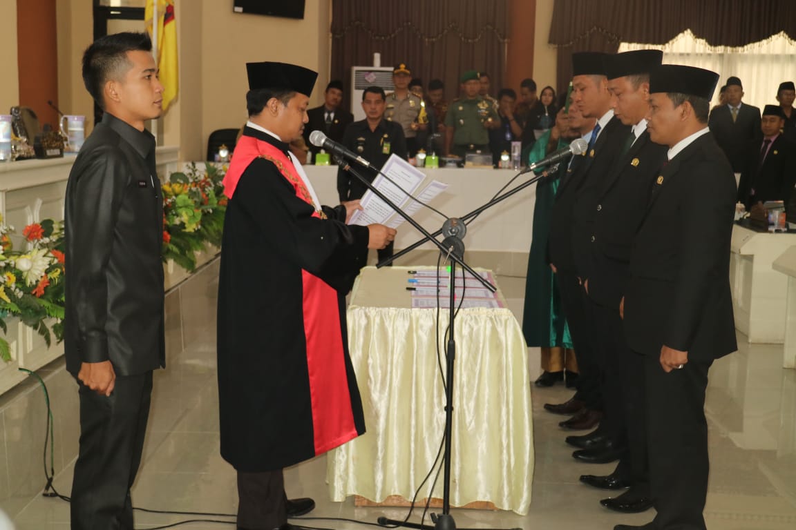 TANGGAMUS (PeNa)–DPRD Tanggamus akhirnya resmi memiliki empat pimpinan defenitif masa bakti 2019-2024. Pelantikan empat pimpinan tersebut melalui rapat paripurna yang dipimpin Ketua Sementara Heri Agus Setiawan, S.Sos. didampingi Wakil Ketua Sementara Zulqi Kurniawan, bertempat di Gedung DPRD,Senin (7/10).Sementara prosesi pengambilan sumpah janji dipimpin Ketua Pengadilan Negeri Kotaagung, Ardhi Wijayanto, S.H., M.H.