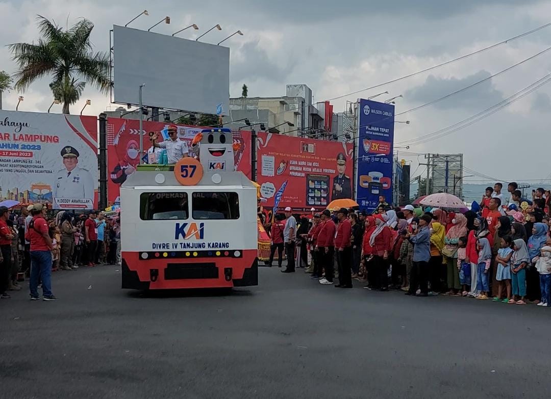 Bandar Lampung – Terdapat 54 peserta yang terdiri dari OPD, organisasi masyarakat, BUMD, BUMN dan club mobil jeep turut memeriahkan festival budaya dan festival kendaraan hias, di Tugu Adipura pada, Minggu (18/6).
