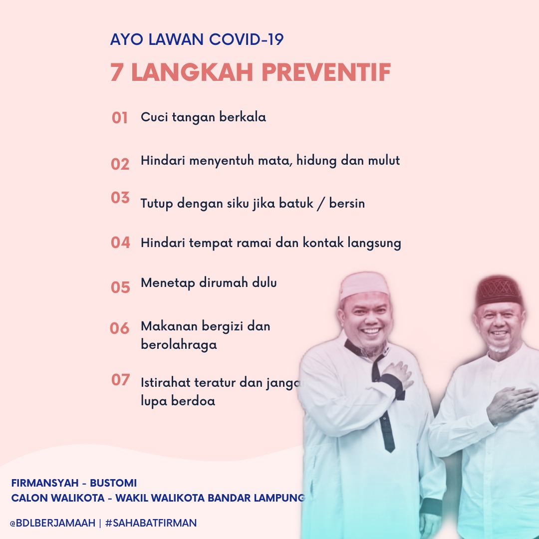“Intinya, bagaimana kita mengajak masyarakat Bandar Lampung ayo sama-sama menjaga kesehatan diri dan lingkungan sekitar kita. Ikuti arahan pemerintah. Bukan saja orang lain akan menularkan virus Corona kepada kita, bisa jadi kita yang menularkan virus Corona kepada orang lain,” kata dia.