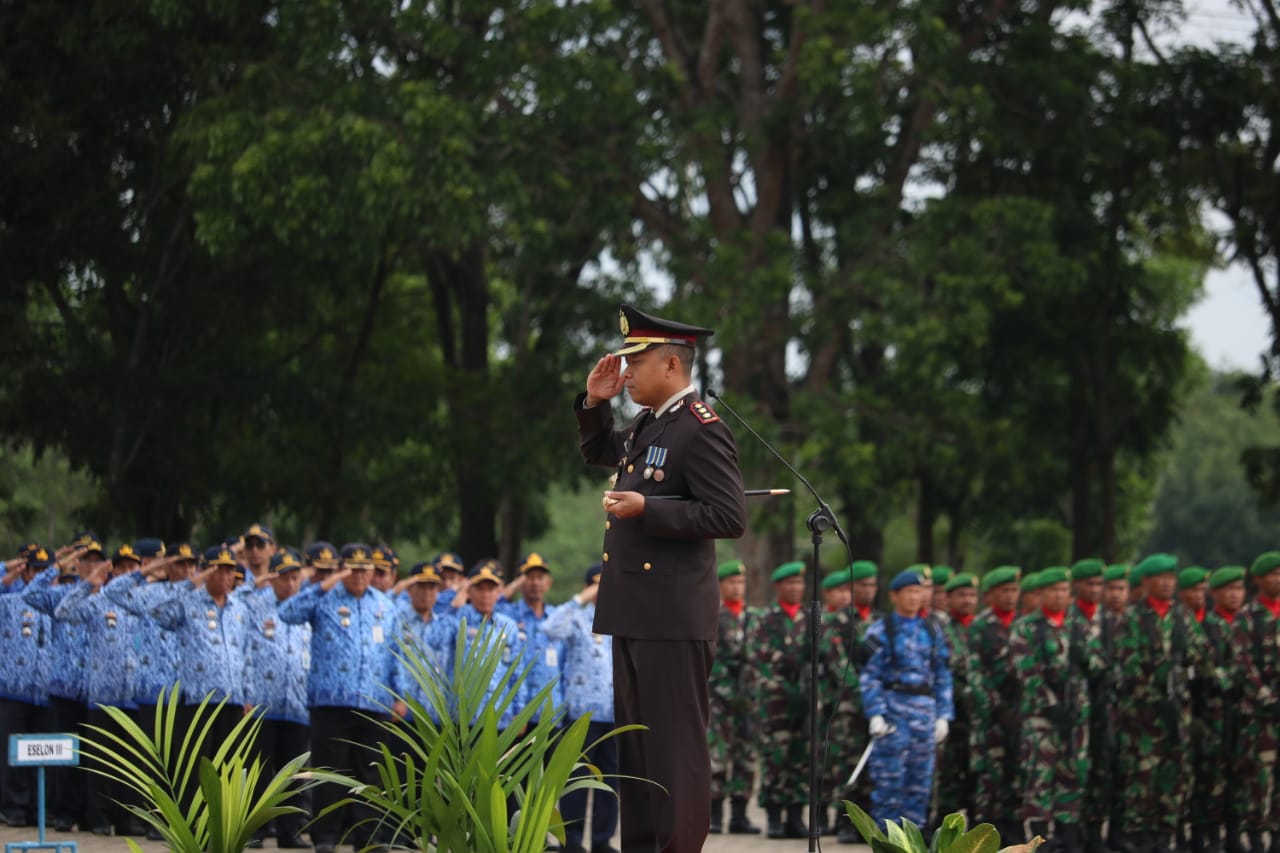 Sebagai Inspektur Upacara Kapolres Tulangbawang AKBP. Syaiful Wahyudi, lalu Komandan Upacara Kapten Arif dari Kodim 0426 Tulangbawang.