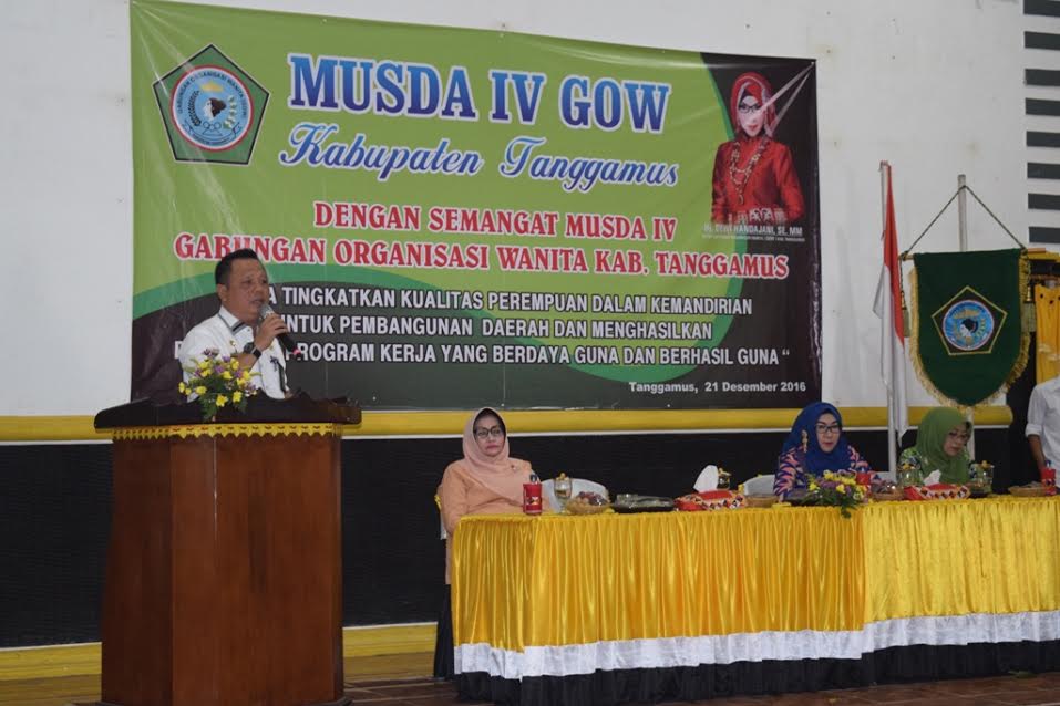 TANGGAUMUS (PeNa)- Sekretaris Daerah Kabupaten Tanggamus Mukhlis Basri, membuka kegiatan Musyawarah Daerah Ke-IV Gabungan Organisasi Wanita (GOW) Kabupaten Tanggamus di aula Serumpun Padi Pekon Kedaloman Kecamatan Gisting, (21/12).