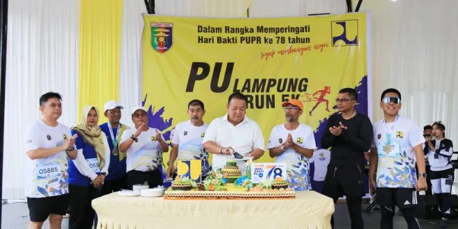 BANDARLAMPUNG – Memperingati Hari Bhakti PUPR ke-78 Tahun, Pemerintah Provinsi Lampung mengadakan PU Lampung Run 5K di Lapangan Korpri Kantor Gubernur, Minggu (17/12/2023).