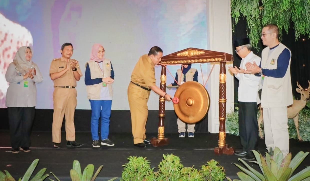 BANDARLAMPUNG – Gubernur Lampung Arinal Djunaidi melakukan pemukulan Gong sebagai tanda dibukanya Festival Wisata Hutan Lampung (FWHL) Tahun 2023, di Ballroom Hotel Swissbell, Senin (03/07/2023).