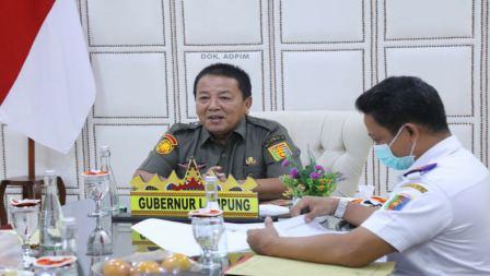 BANDARLAMPUNG (PeNa) – Gubernur Lampung Ir. Arinal Djunaidi menjalin komunikasi secara virtual dengan Direksi PT Angkasa Pura II terkait rencana pengembangan kawasan kesehatan di Bandara Radin Inten II Lampung di Mahan Agung, Rumah Dinas Gubernur, Kamis (8/10/2020).