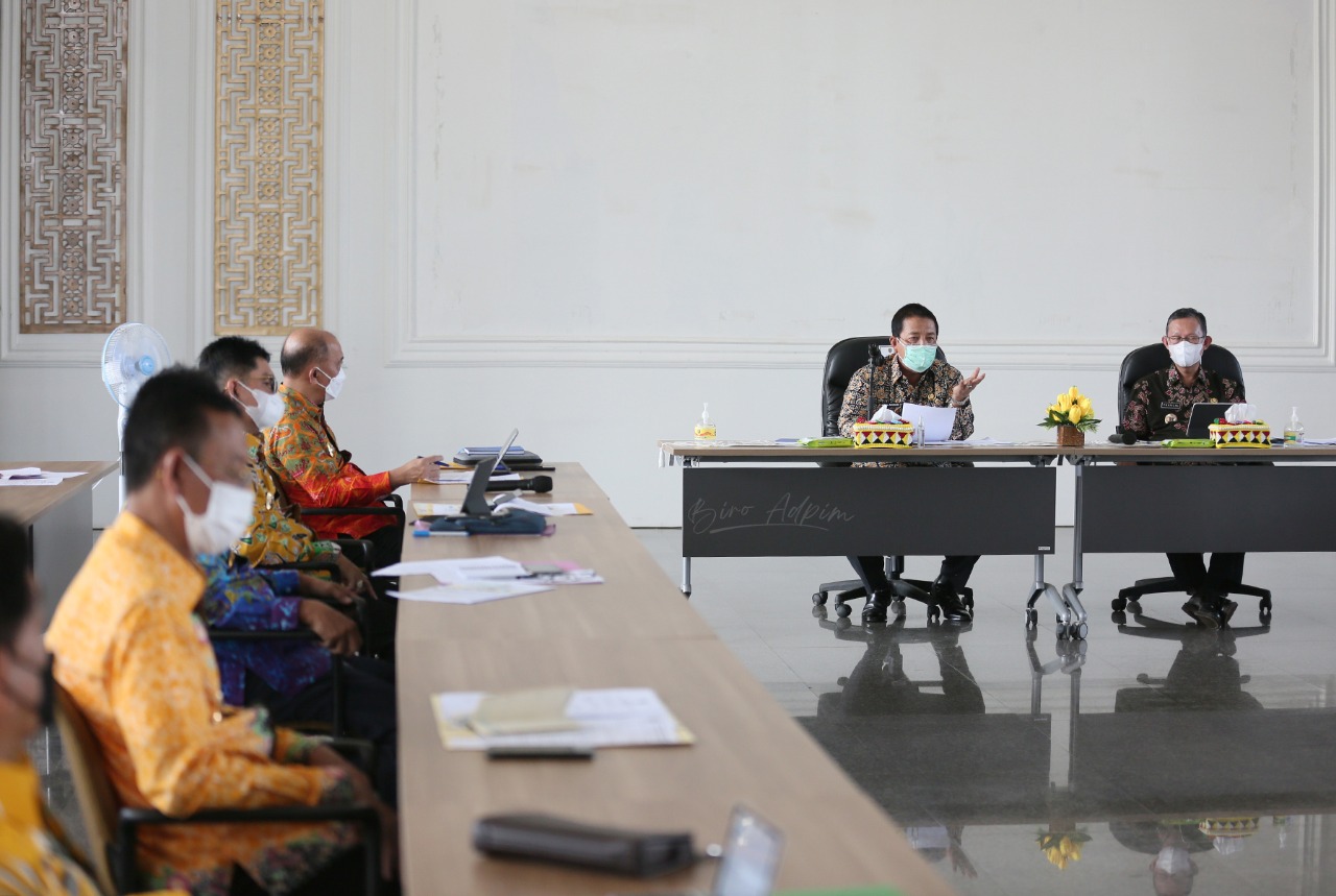 BANDARLAMPUNG (PeNa) – Gubernur Lampung Arinal Djunaidi memimpin Rapat Pembahasan Dukungan Kemudahan Investasi dan Ekspor Lampung, yang dilaksanakan di Mahan Agung, Bandarlampung, Kamis (15/4/2021).