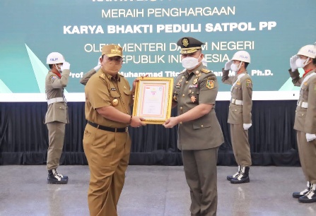 Menurut Bernhard, Penghargaan Karya Bhakti Peduli Satpol PP diberikan kepada kepala daerah, baik ditingkat provinsi maupun kabupaten/kota atas karya bhakti dan kepeduliannya terhadap Satuan Pamong Praja.