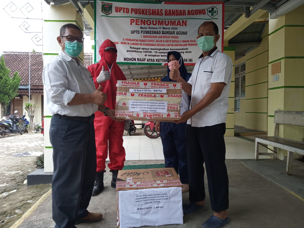 Sementara bantuan untuk Puskesmas Bandar agung, Jatidatar, dan Puskesmas Sriwijaya Mataram berupa masker medis, total sebanyak 120 boks (6.000 pcs).