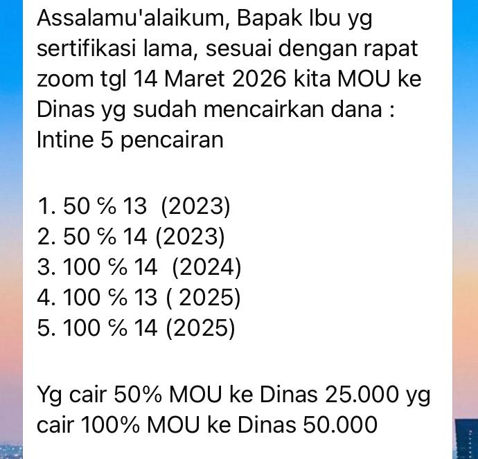 Munculnya klausul beban setor tersebut, dalam tangkapan layar dijelaskan merupakan salah satu bentuk realisasi dari MoU yang dibuat antara tiga pihak, Kelompok Kerja Guru (KKG) PAI, Musyawarah Guru Mata Pelajaran (MGMP) SMP dan Dinas Pendidikan. MoU tiga pihak atau tripartite agreement tersebut merupakan tindak lanjut dari rapat virtual (zoom meeting) pada tanggal 14 Maret 2026. Namun tidak dijelaskan pada tangkapan layar, ‘setoran’ tersebut diserahkan melalui siapa dan dalam bentuk apa.