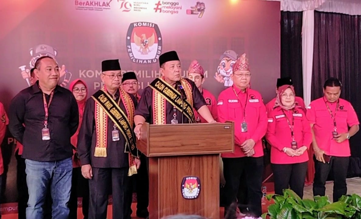 Pasangan ini hanya didampingi oleh Ketua DPD PDIP Lampung, Sudin, beserta beberapa anggota partai. Tampak pula empat kader berbaju kuning yang belum diketahui identitasnya.