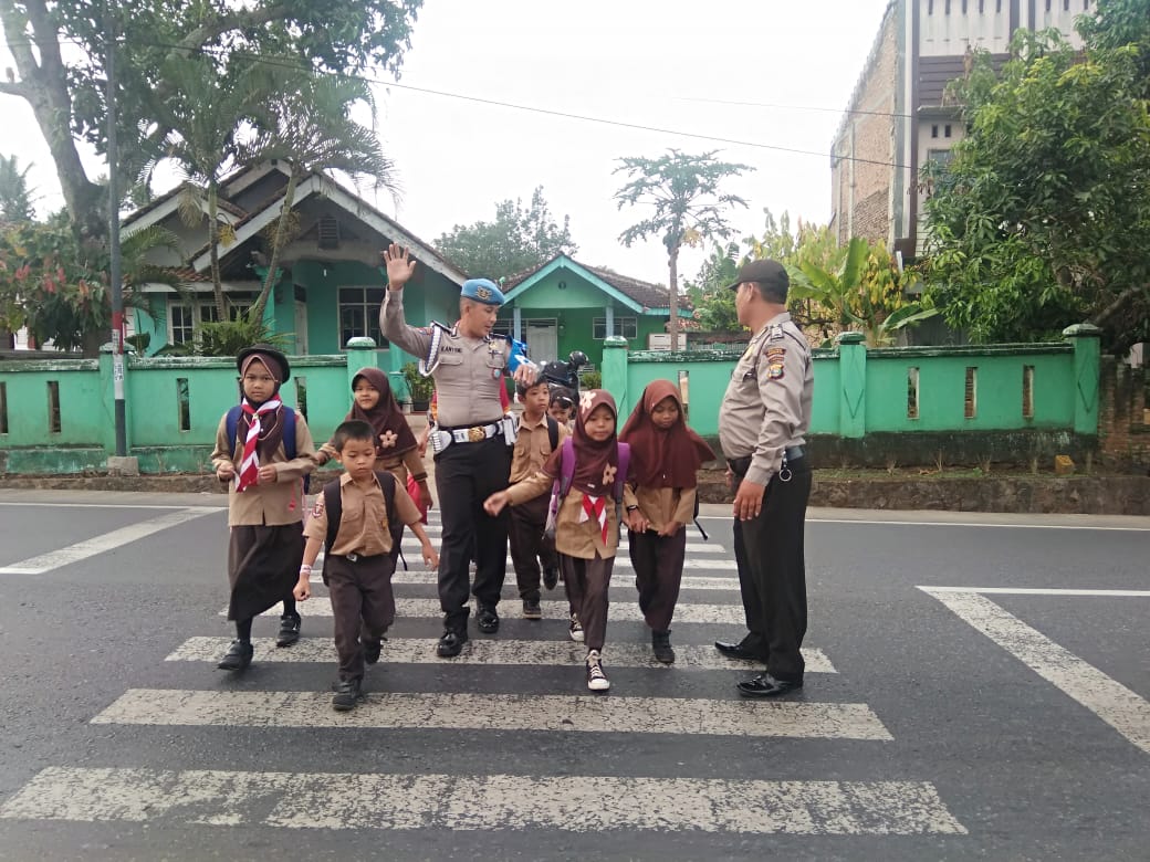 PESAWARAN-(PeNa), Guna menghindari kecelakaan dijalan raya, jajaran Polres Pesawaran bantu para pejalan kaki yang menyebrang untuk beraktifitas pagi disetiap titik rawan dan padat lalulintas, Sabtu (10/11).