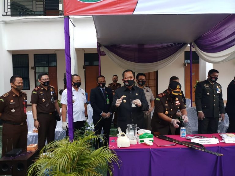 TANGGAMUS (PeNa) – Kejaksaan Negeri (Kejari) Tanggamus memanfaatkan momen Hari Bakti Adyaksa ke 60 untuk menggelar acara pemusnahan barang bukti (BB) kejahatan sejak Januari hingga 1 Juli 2020 di Kantor Kejari Tanggamus, Komplek Perkantoran Pemkab setempat, Rabu (1/7).