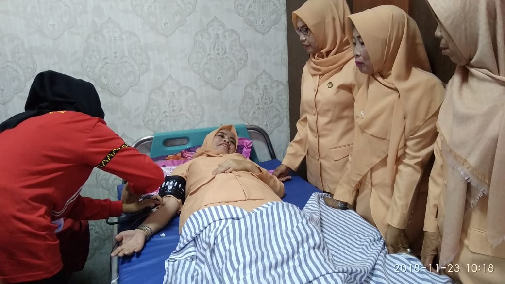 PRINGSEWU -(PeNa), Memperingati Hari Ulang Tahunnya ke-19, Dharma Wanita Persatuan Kabupaten Pringsewu melakukan Bhakti sosial donor darah, pemeriksaan kesehatan, pemeriksaan IVA. Kegiatan dilangsungkan di Loby Utama Kantor Bupati Pringsewu, Jumat (23/11).