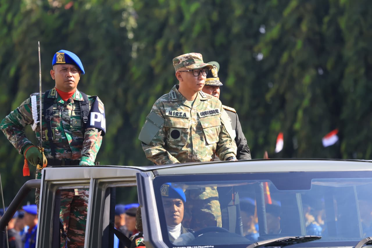 Bandar Lampung – Gubernur Lampung Rahmat Mirzani Djausal menghadiri Upacara Peringatan Hut ke-80 Tentara Nasional Indonesia yang digelar di Lapangan Korpri Kantor Gubernur, Minggu (05/10/2025).