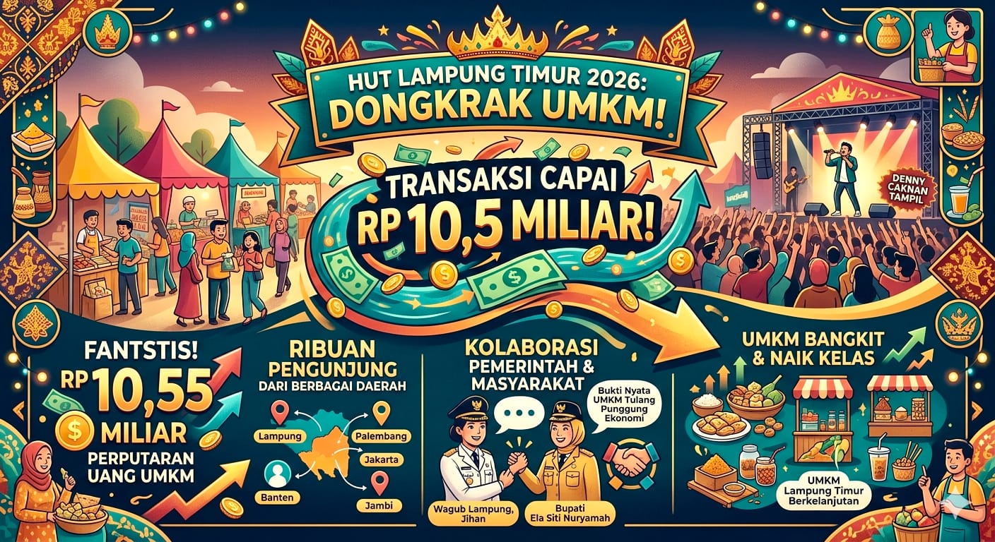Dengan capaian tersebut, HUT Lampung Timur tahun ini tak hanya meninggalkan kesan meriah, tetapi juga jejak nyata dalam menggerakkan roda ekonomi rakyat.