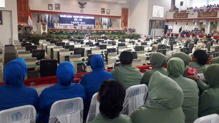 Dalam rangka perayaan hari jadi Provinsi Lampung ke-55 sejak 1964-2019, DPRD Provinsi Lampung menggelar Rapat Paripurna Istimewa di gedung DPRD Provinsi Lampung, Senin (8/3/2019). Perayaan hari jadi bertemakan ‘Lampung Maju Untuk Indonesia’ berlangsung meriah.