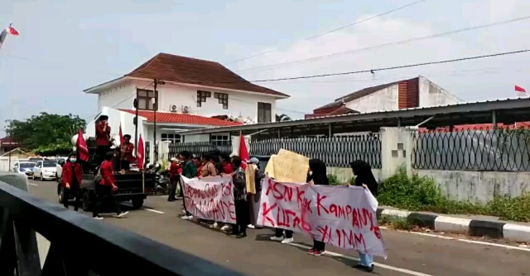 RITME – Puluhan mahasiswa yang tergabung dalam Ikatan Mahasiswa Muhammadiyah (IMM) Kota Bandar Lampung menggelar, aksi damai di Kantor Badan Pengawas Pemilu (Bawaslu) Kota Bandar Lampung pada Kamis, 4 Mei 2023.