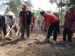 Usai memberikan sambutan Bupati Lampung Tengah Loekman Djoyosoemarto langsung mengambil cangkul dan bergotong royong bersama warga. Warga pun tampak sangat bersemangat melakukan gotong royong bersama Bupati Lampung Tengah.