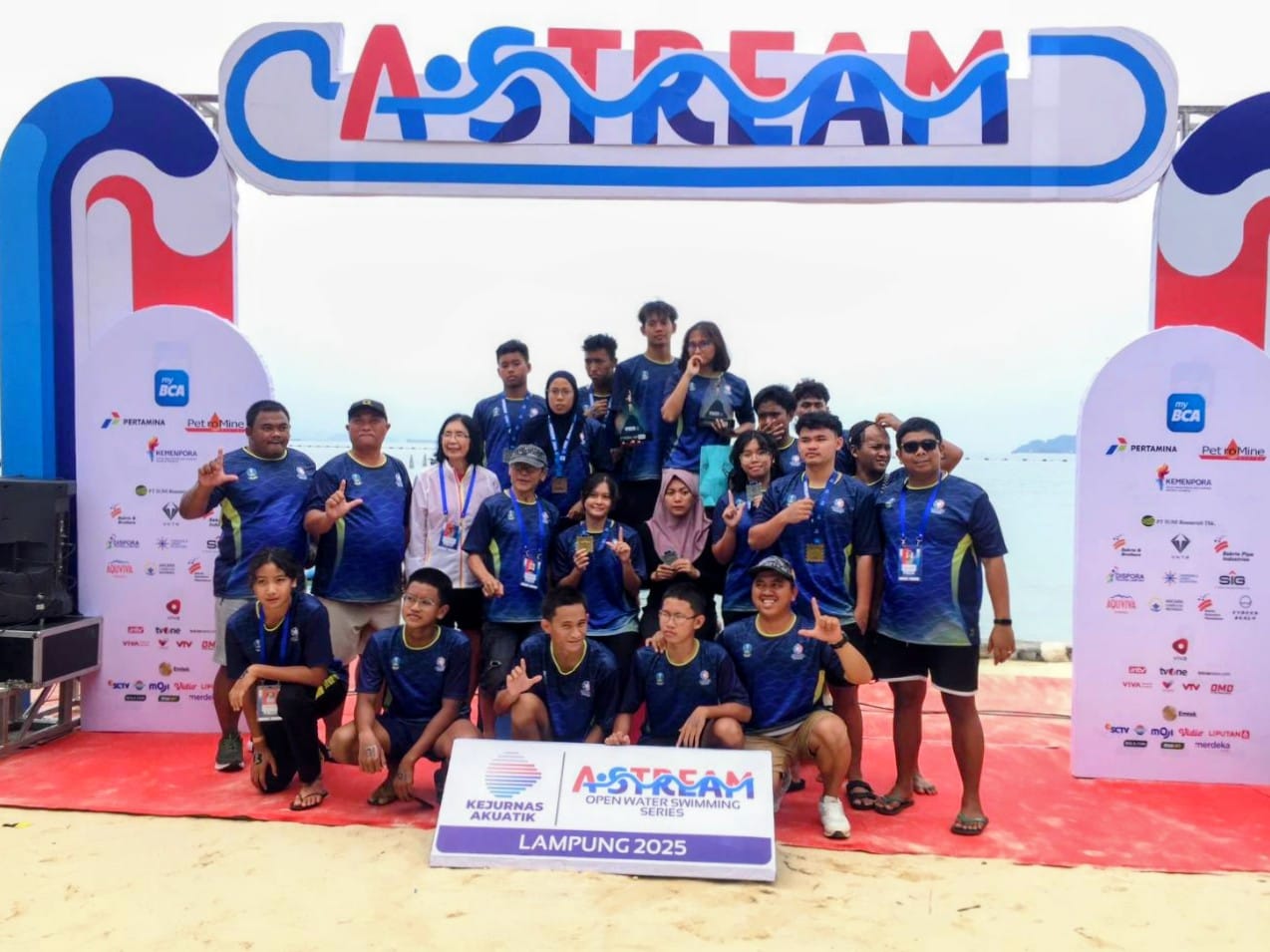 Pesawaran – (PeNa), Kontingen Jawa Timur tampil mendominasi Kejuaraan Nasional (Kejurnas) Astream Open Water Swimming (OWS) Series 2025 di Kyokko Beach, Pesawaran, Lampung, pada 30–31 Agustus 2025.