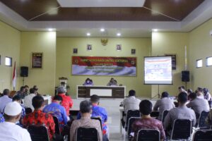P E S A W A R A N – (PeNa), Menjelang Libur Hari Raya Idul Fitri 1442 Hijriyah, TNI, Polri dan Pemerintah Daerah (Pemda) Kabupaten Pesawaran menggelar Rapat Koordinasi (Rakor) Lintas Sektoral dalam rangka persiapan pelaksanaan Operasi Ketupat Krakatau 2021 di Aula Pamor Polres Pesawaran, Kamis (29/04/2021).