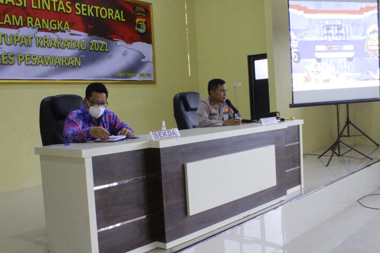 Kapolres Pesawaran AKBP Vero Aria Radmantyo mengatakan bahwa kegiatan Rapat Kordinasi lintas sektoral dalam rangka mempersiapkan Operasi Ketupat Krakatau 2021 Polres Pesawaran yang bertujuan untuk memberitahukan kepada seluruh pemangku kebijakan di Kabupaten Pesawaran untuk dapat meninjau transisi menjadi Kabupaten berpola PPKM.