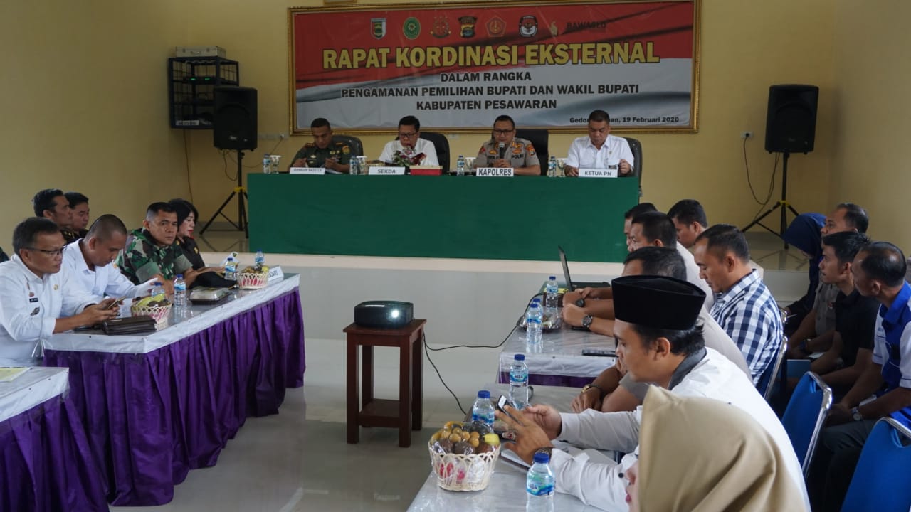 Rapat koordinasi tersebut dipimpin langsung Kapolres AKBP Popon Ardianto Sunggoro dengan dihadiri seluruh pihak dan unsur pimpinan daerah setempat. Diantaranya adalah Sekda Kabupaten Pesawaran Kusuma Dewangsa, Dandim 0421 Lampung Selatan, dan Forkompinda yang terdiri dari Ketua Pengadilan Negeri, Kepala kejaksaan Negeri, Ketua KPU dan Bawaslu Pesawaran.