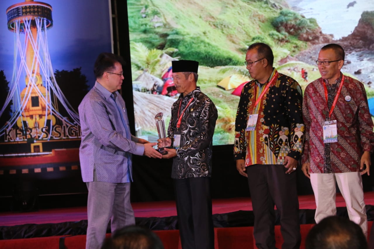 JAMBI-(PeNa), Kabupaten Pringsewu kembali menorehkan prestasi. Kali ini, Bupati Pringsewu Sujadi menerima penghargaan Smart Sanitation Award AKKOPSI 2018 pada acara City Sanitation Summit XVIII di Hotel BW Luxury, Jambi, Kamis (25/10).