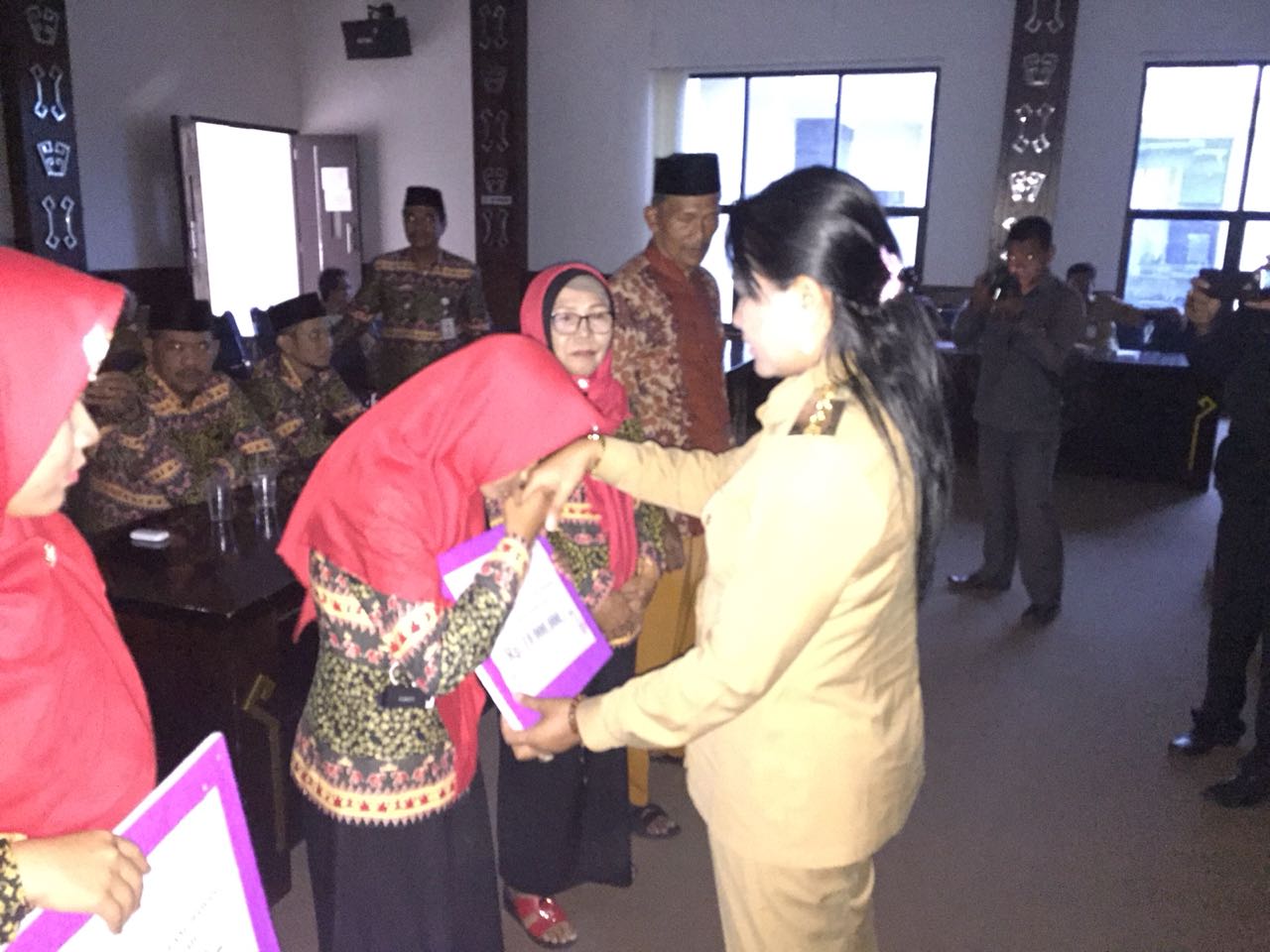 TULANG BAWANG-(PeNa), Rombongan kafilah Musabaqoh Tilawatil Qur’an (MTQ) Kabupaten Tulang Bawang baru saja selesai mengikuti lomba Tingkat Provinsi Lampung. Kepulangannya disambut Bupati Winarti di Lantai II, Aula Kantor Pemda Tulangbawang, Selasa (15/5).