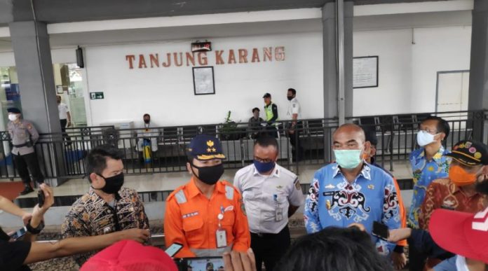 BANDARLAMPUNG (PeNa) – Pemerintah Provinsi Lampung dan PT KAI Stasiun Tanjung Karang melakukan simulasi penanganan penyebaran pandemi Covid-19 di Stasiun Kereta Api Tanjung Karang, Bandar Lampung, Kamis (23/04/2020).