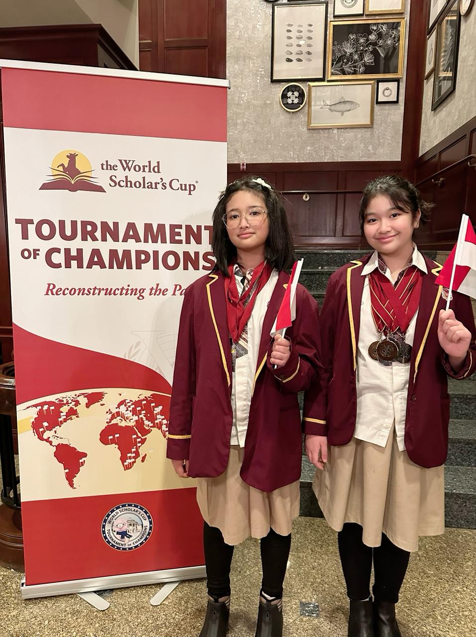 Aisha dan Neby merupakan delegasi yang mewakili Indonesia dari SMP dan SD Binus Scholl, dengan perolehan 11 Mendali, dua mendali emas dan 9 mendali perak di Final Turnamen Akademik Pelajar Kelas Dunia.