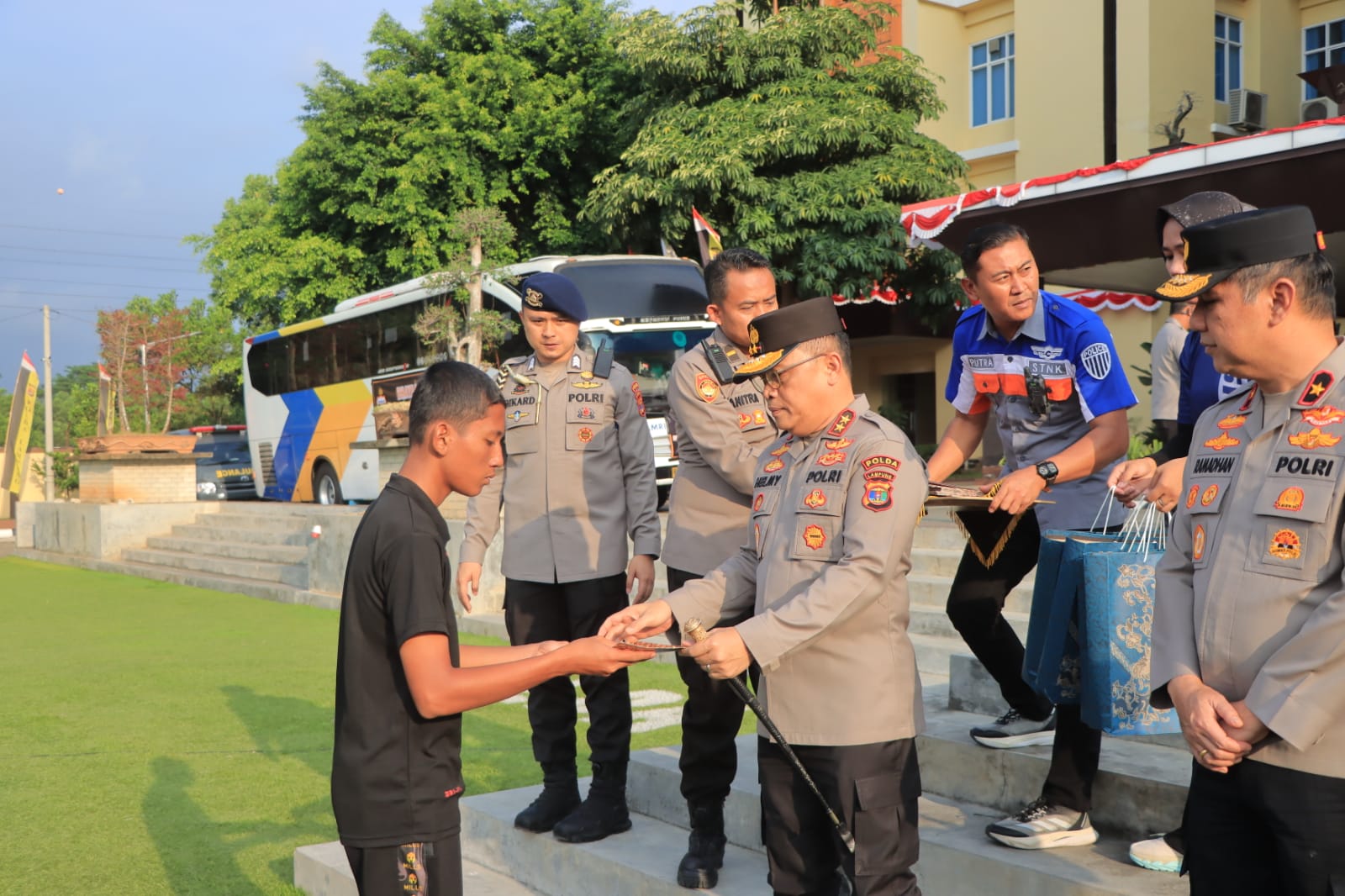 Acara pelepasan penuh semangat dukungan ini berlangsung di Mapolda Lampung, Kamis (28/8/2025). Kehadiran Kapolda beserta jajaran menambah motivasi besar bagi seluruh pemain muda.