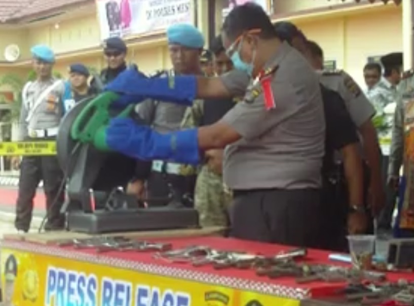 Jika senjata api diserahkan atas dasar keadaran masyarakat sendiri itu tidak akan dikenai sanksi apa pun, namun lain hal nya jika tertangkap tangan akan langsung di proses. “Jadi kita berharap agar masyarakat yang menyerahkan senjata api ilegal miliknya agar segera menyerahkan kepada petugas,” tegas Kapolda.