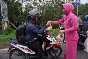 PESAWARAN-(PeNa), Berbagai kebaikan ditingkatkan oleh kaum muslimin, diantaranya yang dilakukan Kapolres Pesawaran AKBP Popon Ardianto Sunggoro yang membagikan takjil puasa menjelang berbuka di jalan lintas barat, Kamis (16/05).