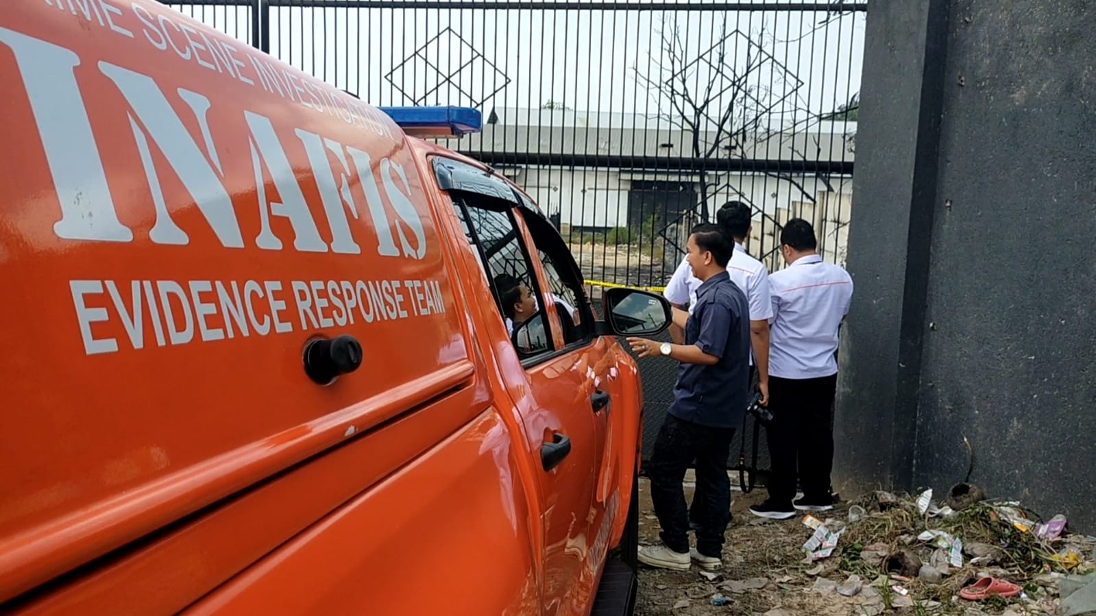 Pantauan di lokasi tim INAFIS Polresta Bandar Lampung tampak menyisir di lokasi kebakaran. Meski begitu, pintu masuk utama gudang tersebut terkunci.