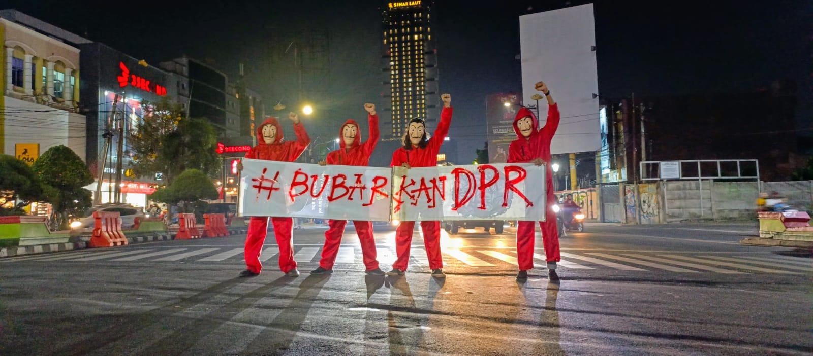 Dalam aksi tersebut, para peserta mengenakan kostum cosplay bertopeng ala Money Heist, mengekspresikan ketidakpuasan mereka terhadap keputusan tersebut. Mereka juga menyerukan pembubaran DPR RI, menganggap bahwa lembaga tersebut tidak lagi mewakili kepentingan rakyat.