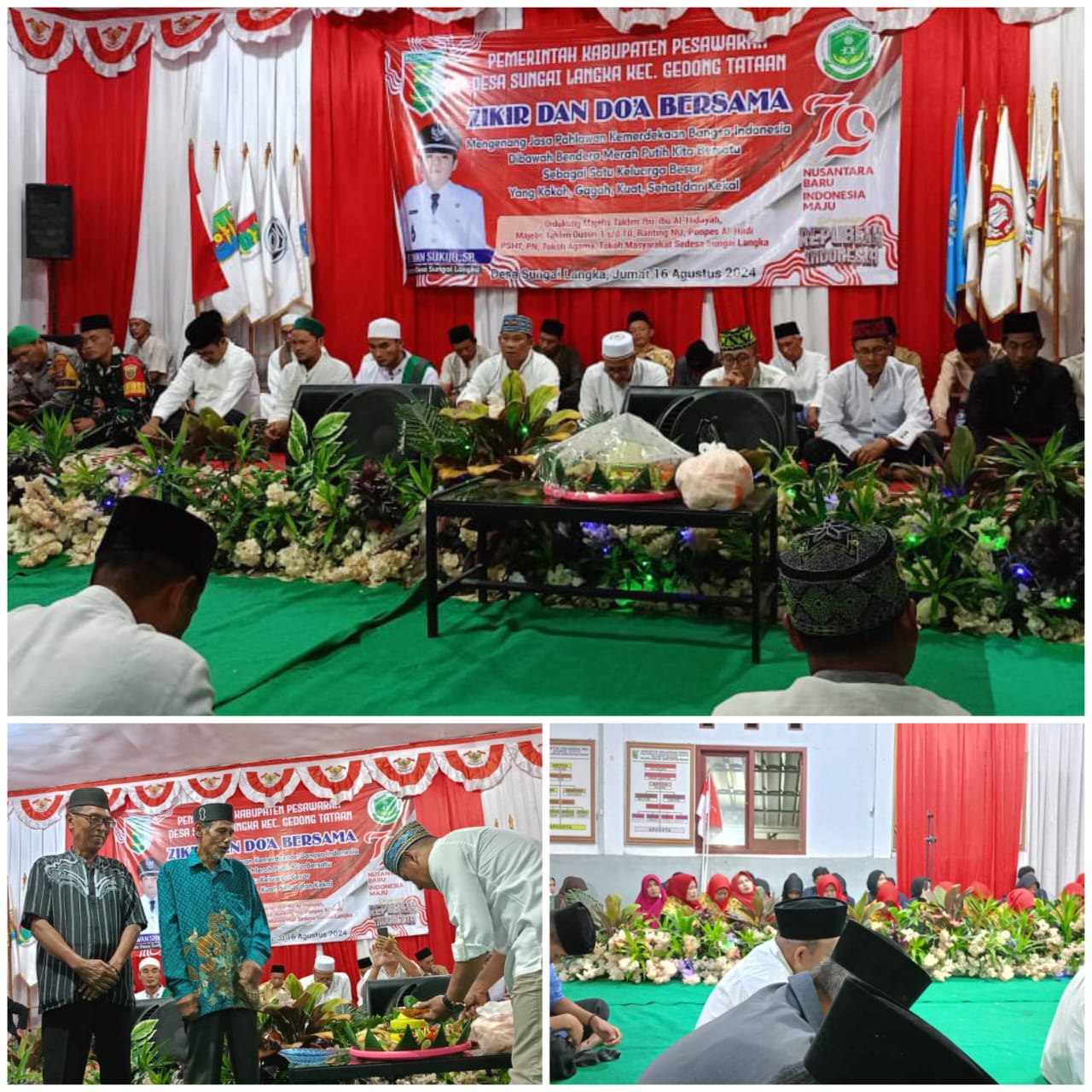P E S A W A R A N -(PeNa), Pemerintah Desa Sungailangka Kecamatan Gedong Tataan gelar dzikir dan doa bersama yang dihadiri seluruh perwakilan majelis taklim dan tokoh masyarakat,tokoh agama,tokoh pemuda dan lainnya serta TNI/Polri di Balai Desa Sungailangka,Jum’at (16/08/2024) malam.