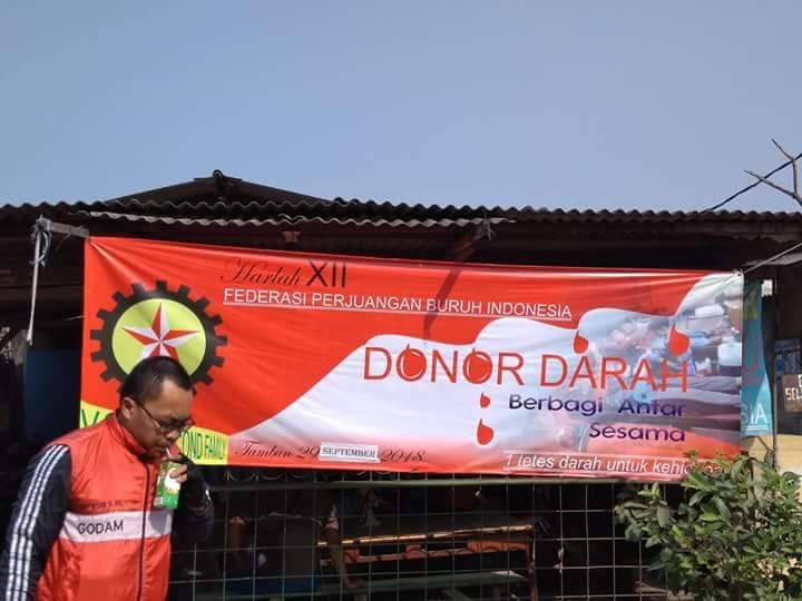BEKASI – Federasi Perjuangan Buruh Indonesia (FPBI) cabang Kabupaten Bekasi, menggelar kegiatan donor darah dalam rangkaian Hari Lahir FPBI ke-11.