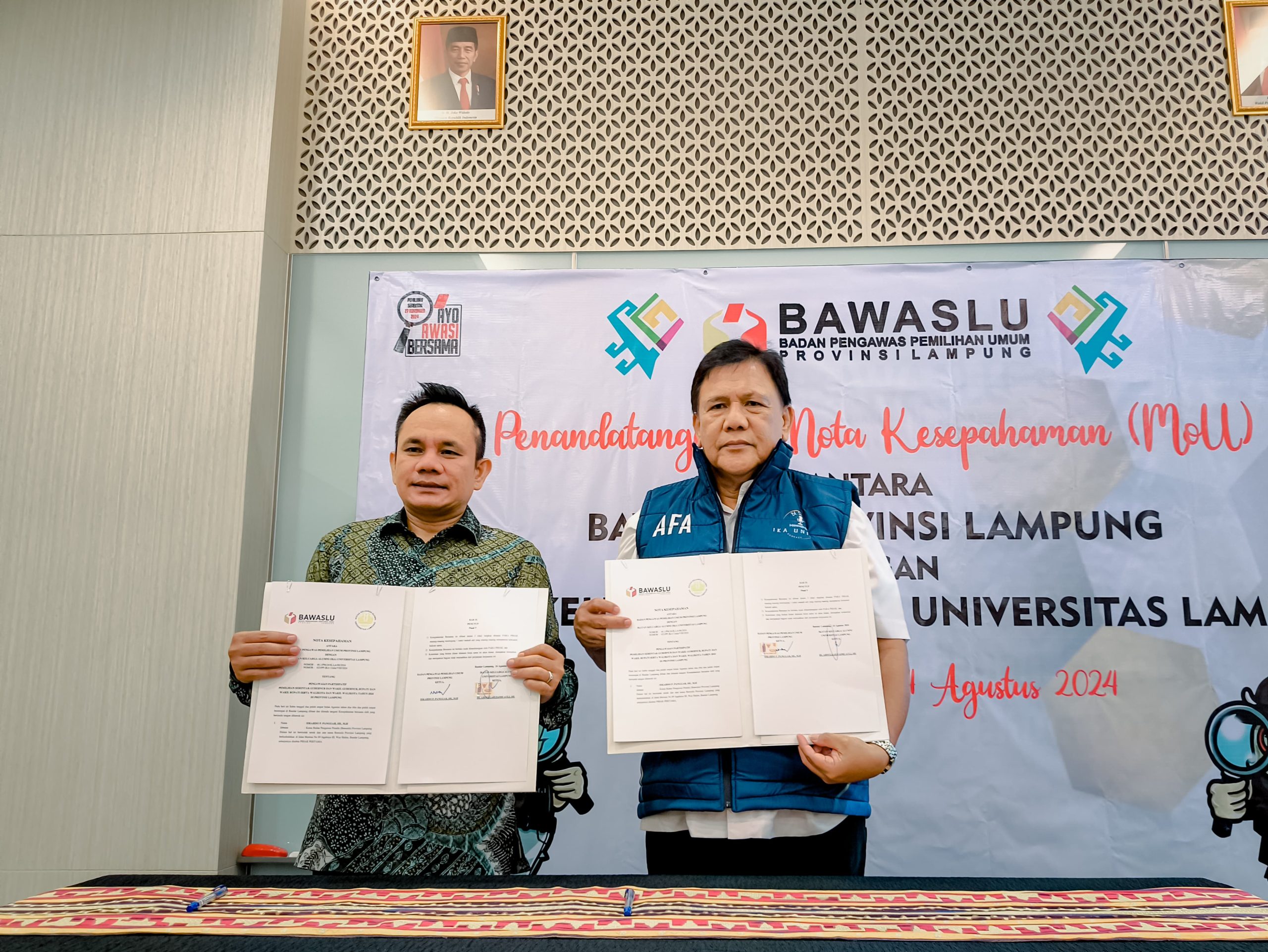 BANDAR LAMPUNG – (PeNa), Badan Pengawas Pemilihan Umum (Bawaslu) Provinsi Lampung dan Ikatan Keluarga Alumni Universitas Lampung (IKA Unila) menjalin kerja sama untuk memperkuat demokrasi dan pelaksanaan pemilu di Provinsi Lampung.