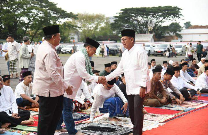 Ketua Dewan Perwakilan Rakyat Daerah (DPRD) Provinsi Lampung, Mingrum Gumay, melaksanakan Sholat Idul Adha bersama masyarakat di Lapangan Saburai, Bandar Lampung, pada hari Minggu (17/6).