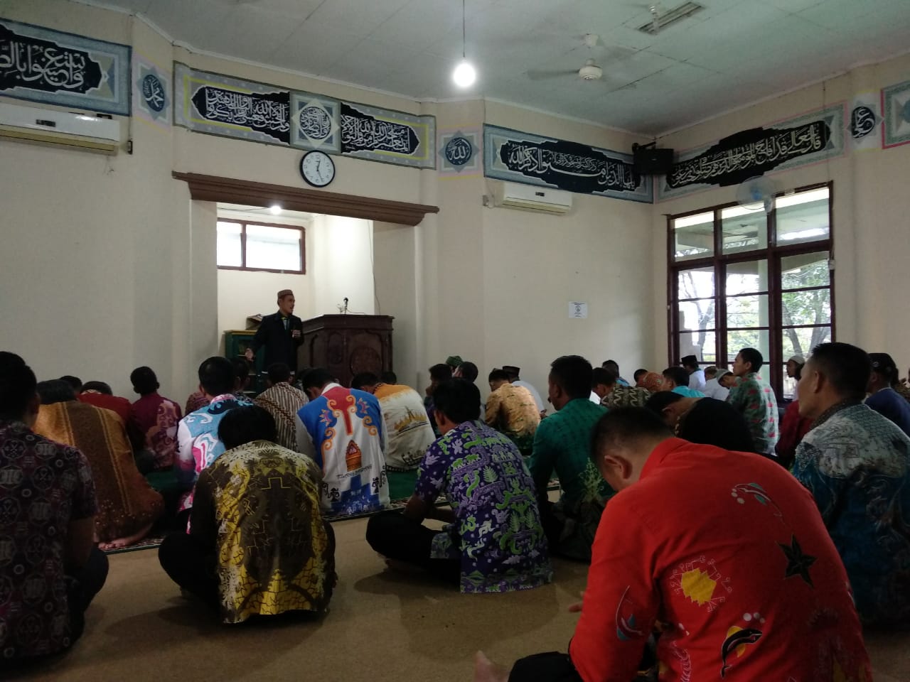Sholat dzuhur tersebut di imami oleh Yantori dengan makmum jajaran pengurus MUI Kabupaten Tulang Bawang, PJ Sekda Tulang Bawang Anthoni, Asisten I Akhmad Suharyo, Kepala Dinas PUPR Ferly Yuledi dan Kepala Badan Kesbangpol Hamami Ria, serta para pegawai dilingkup Pemkab Tulang Bawang. PeNa-edi.