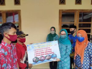 Bantuan yang dimaksud diserahkan secara simbolis kepada kader PKK dan masyarakat yakni berupa bantuan pembuatan gapura kampung KB, seragam PKK lapangan, bantuan masker dan kelambu dari PMI, bantuan benih ikan, bibit sayuran dan masih banyak lagi bantuan dari Organisasi Perangkat Daerah (OPD) terkait seperti bantuan dari dinas PPKB, capil, Dinas arsip dan perpustakaan, dinas kesehatan, dinas PPPA, Dinas Perikanan, Dinas Pertanian, Dinas Ketahanan Pangan, Dinas Lingkungan Hidup, Dinas Koperasi dan UKM dan Dinas BPBD.