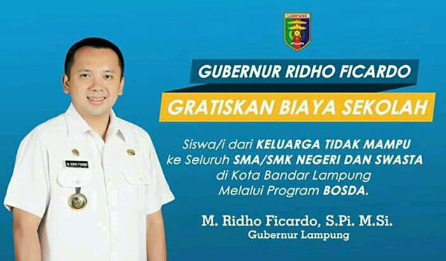 Bandar Lampung (PeNa)-Sejak ditetapkannya putusan Mahkamah Konstitusi (MK) tentang pengelolaan SMA/SMK menjadi kewenangan Provinsi Duet Kepemimpinan M.Ridho Ficardo-Bachtiar Basri langsung mengambil strategis dengan menganggarkan dana sebesar Rp 90 miliar lebih pada APBD 2017 lalu untuk membiayai siswa miskin jenjang pendidikan menengah baik negeri maupun swasta dalam bentuk program Bantuan Operasional Sekolah Daerah (BosDa) dengan nilai anggaran mencapai lebih dari Rp 90 miliar.