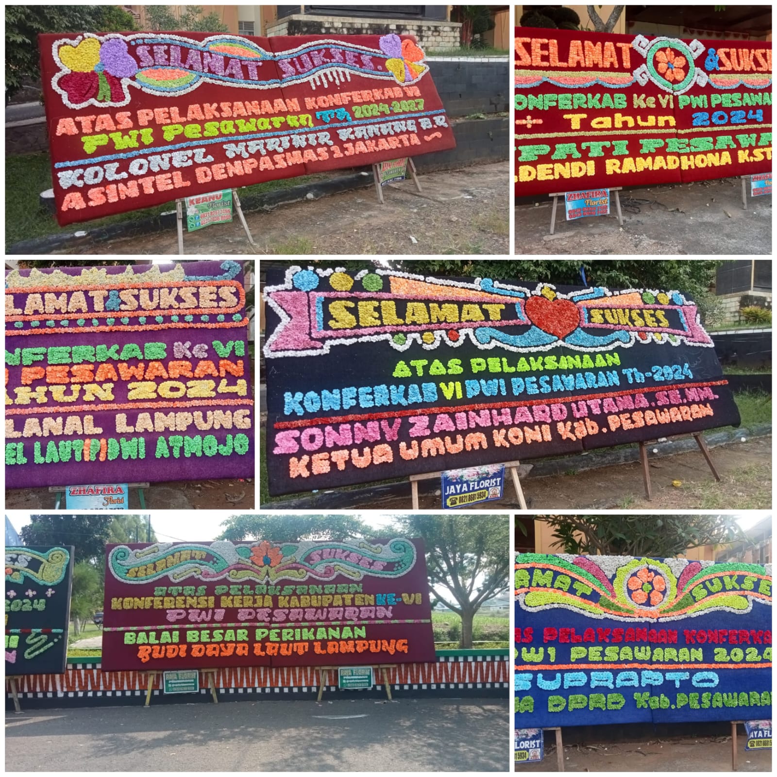 P E S A W A R A N – (PeNa), Malam digelarnya Konferensi Kabupaten (Konferkab) VI PWI Kabupaten, ratusan karangan bunga membanjiri lokasi kegiatan di Komplek Perkantoran Pemda Kabupaten Pesawaran Desa Way Layap,Minggu (23/06/2024).