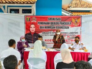 BANDARLAMPUNG(PeNa) – Kostiana, Anggota DPRD Provinsi Lampung menggelar sosialisasi pembinaan ideologi pancasila dan wawasan kebangsaan untuk dapat membangkitkan kembali nilai-nilai Pancasila kepada muda-mudi penerus bangsa.