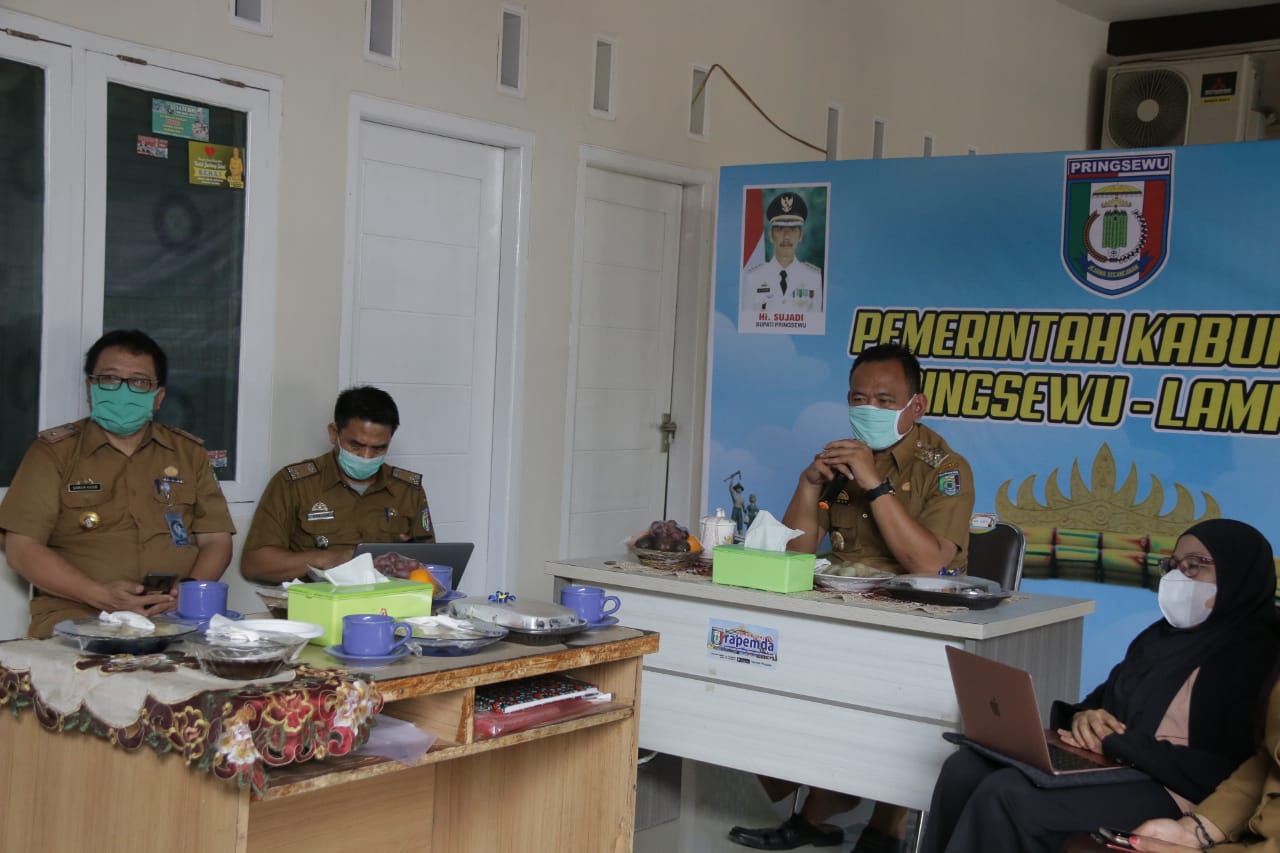 PRINGSEWU-(PeNa), Gerakan Pramuka Kwartir Cabang Pringsewu lakukan Video Conference dengan sembilan Pengurus Kwartir Ranting se Kabupaten Pringsewu di Rumah Dinas Wakil Bupati setempat, Senin (20/04/2020).