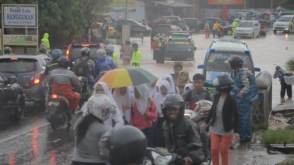 Air bah bahkan telah melumpuhkan jalan utama lintas barat tepatnya di Kecamatan Gedong Tataan Kabupaten Pesawaran Lampung.