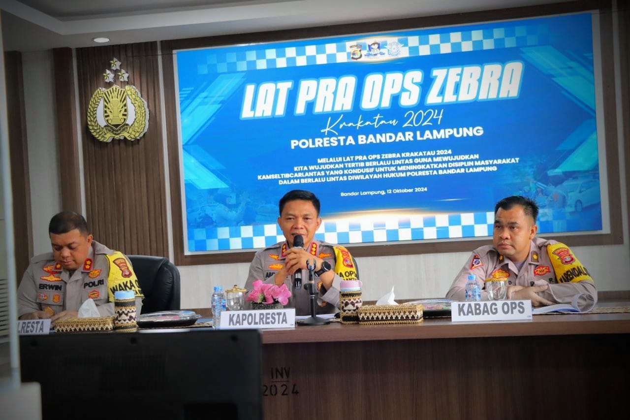 BANDARLAMPUNG – (PeNa), Dalam rangka menekan angka pelanggaran dan kecelakaan lalu lintas, Satlantas Polresta Bandar Lampung melaksanakan Latihan Pra Operasi (Latpra Ops) Zebra Krakatau 2024, Sabtu (12/10/2024) di Aula Mapolresta Bandar Lampung.