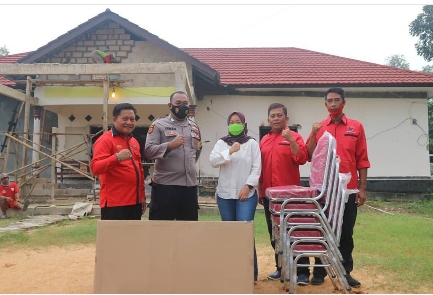 Bantuan berupa 5 kursi dan 2 meja kerja diserahkannya didampingi pengurus PDI Perjuangan Candipuro, Lampung Selatan. Senin (25/05).